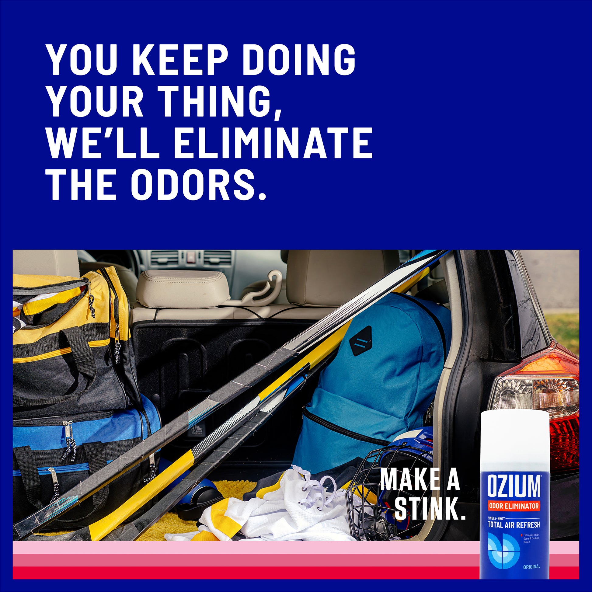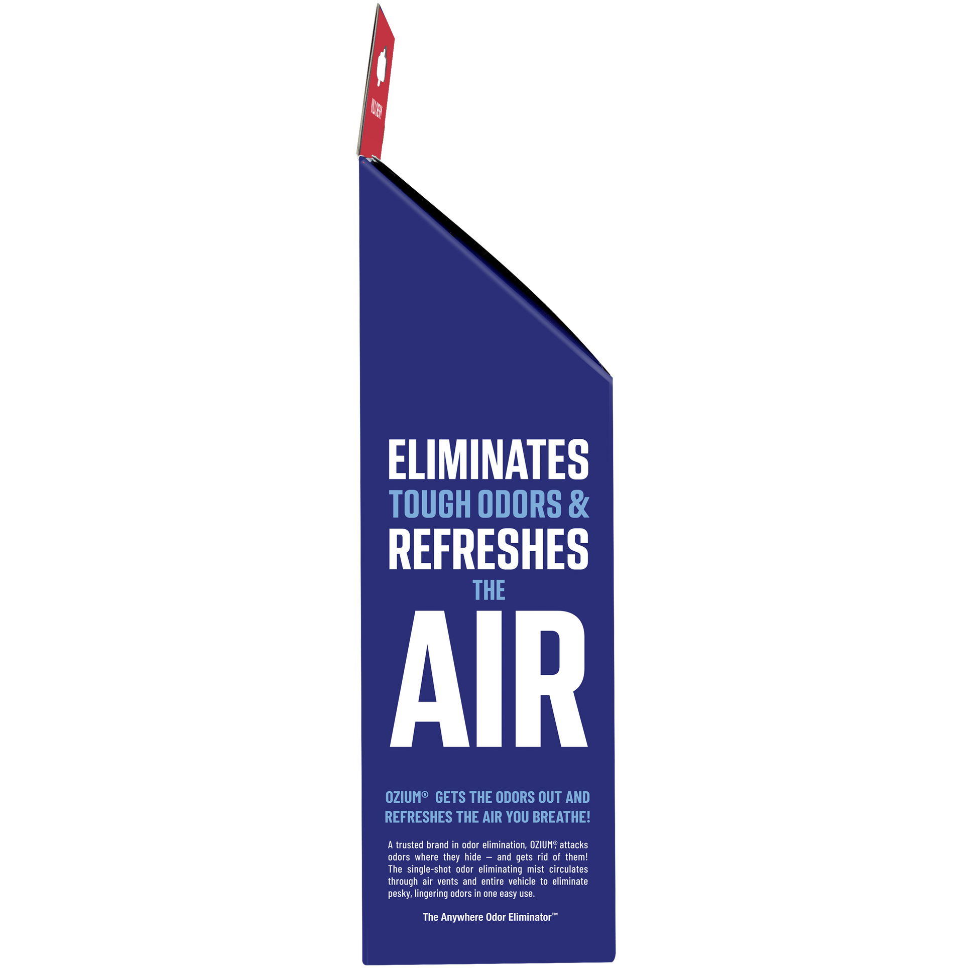 Place OZIUM® in the center of the room or odorous environment. Point the nozzle away from you and press the activating trigger.