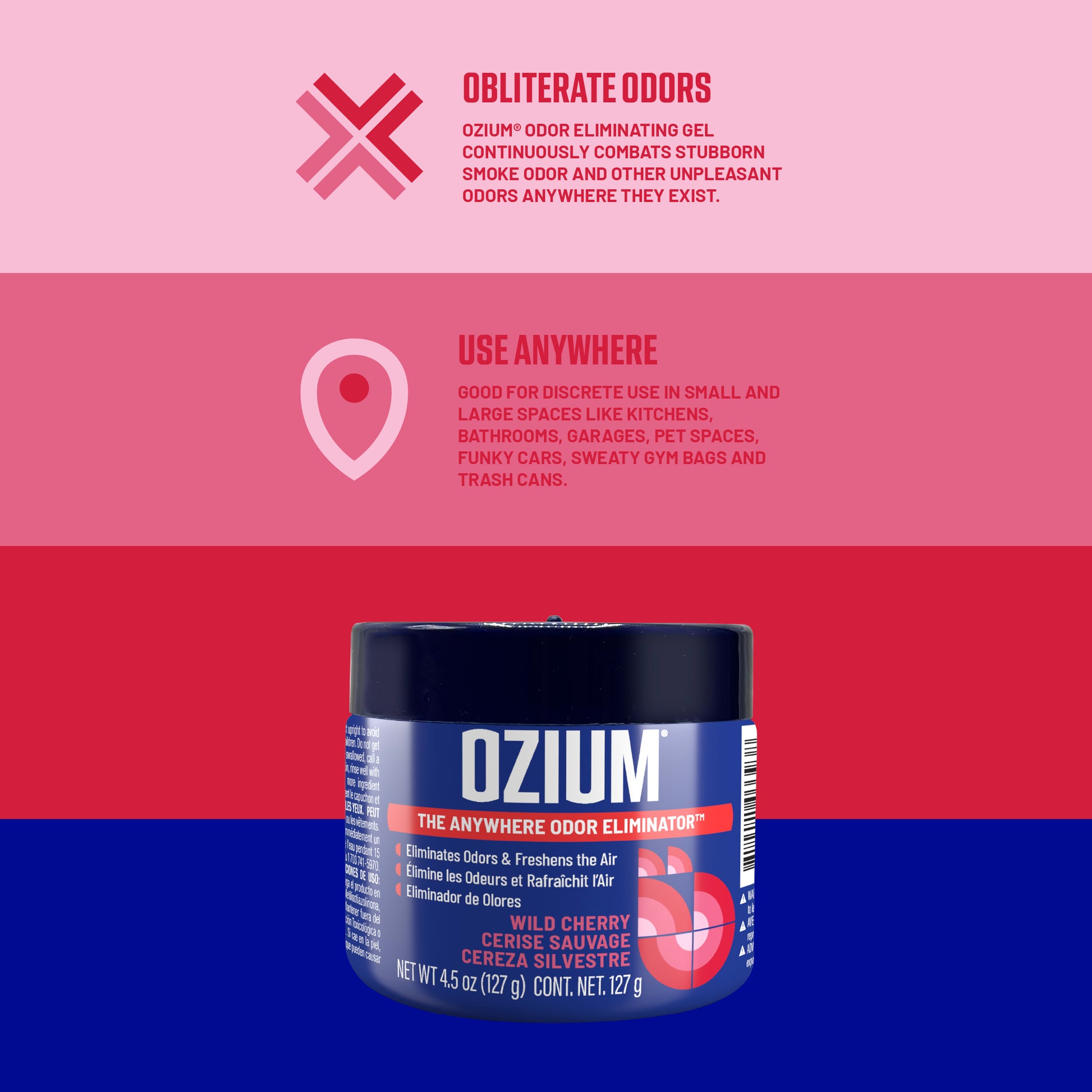 OZIUM® odor eliminating gel continuously combats stubborn smoke odor and other unpleasant odors anywhere they exist.