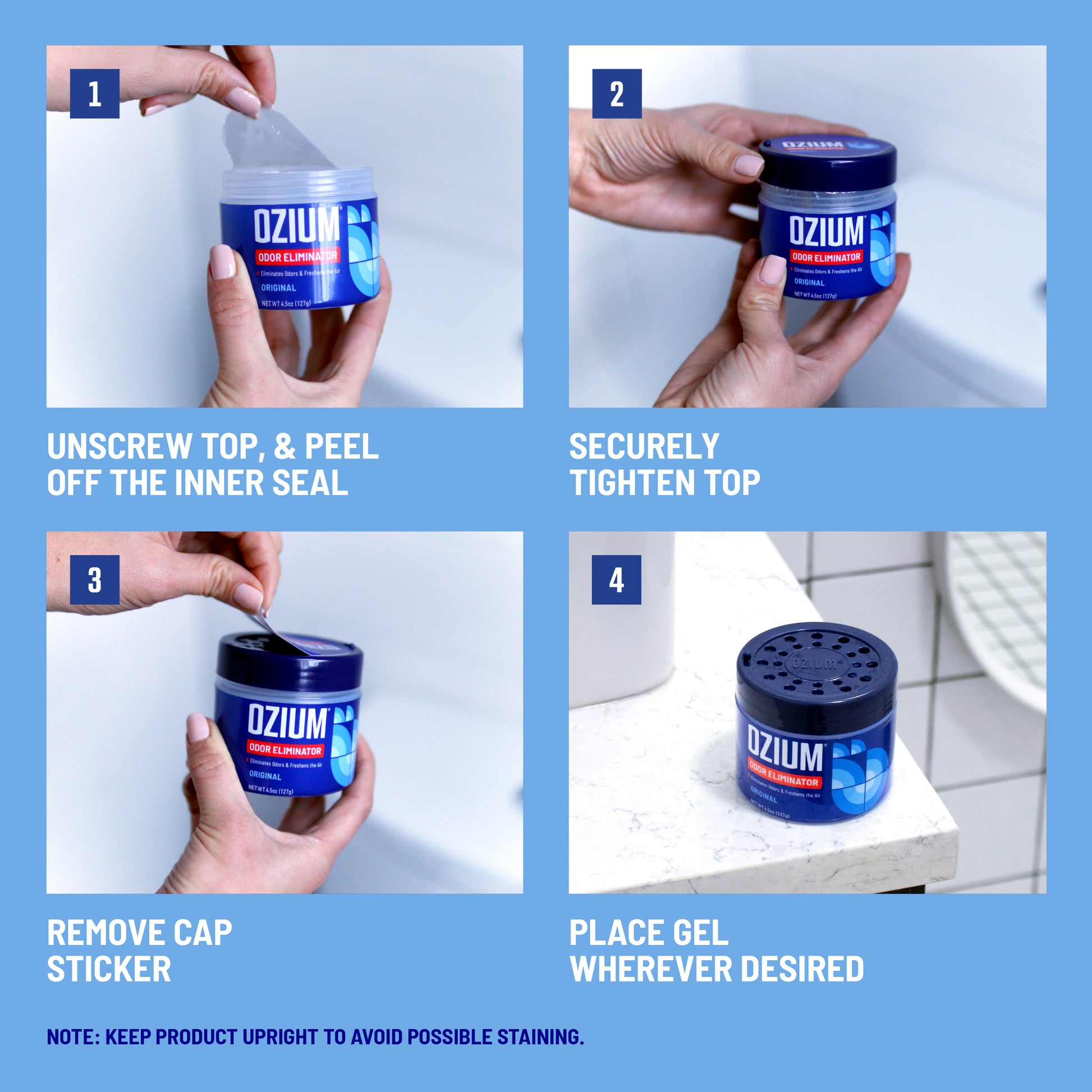 Unscrew top, and peel off the inner seal. Securely tighten top and remove cap sticker. Adjust airflow with slider.